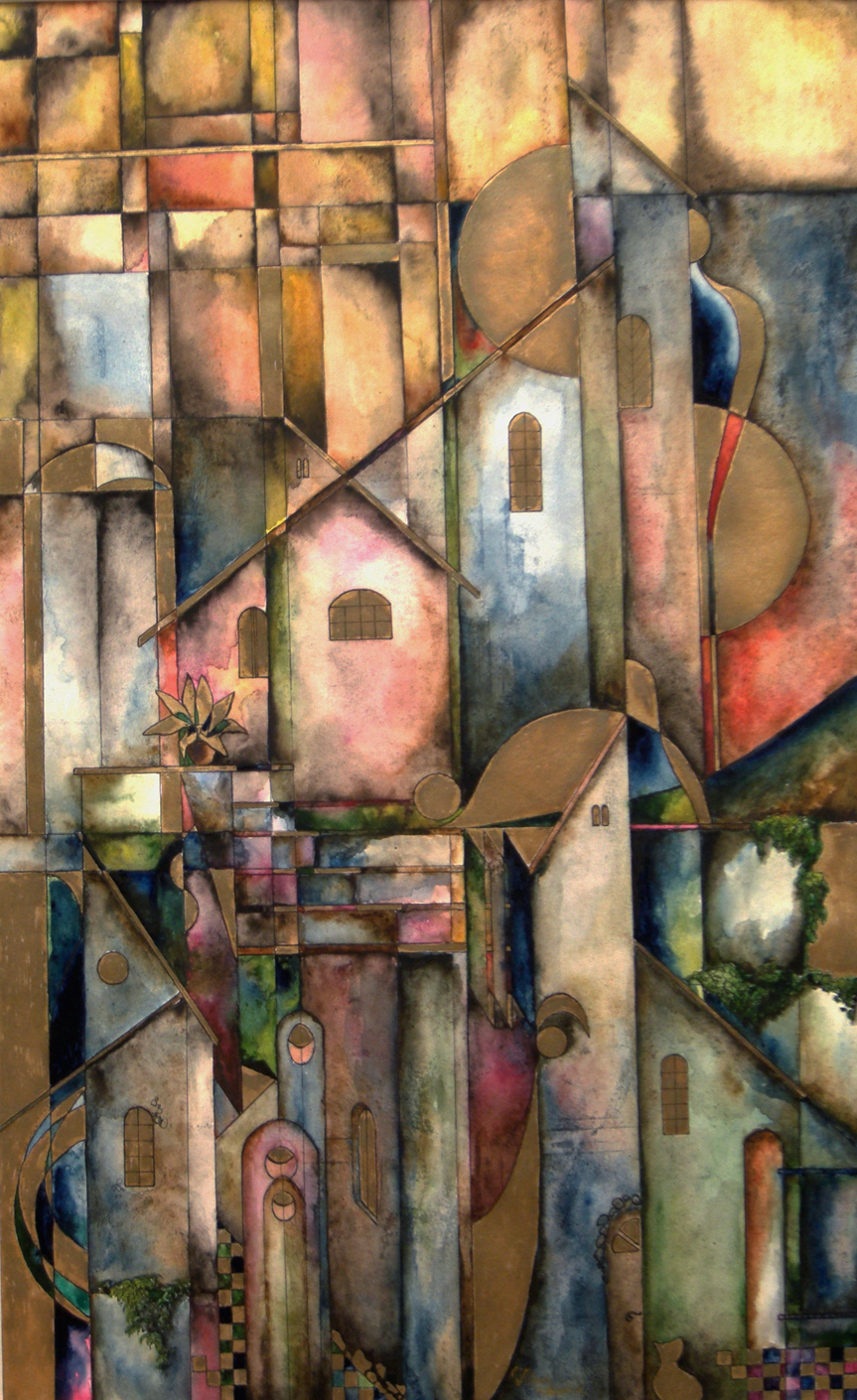 Pillanatok/Moments 297x420 mm Watercolor, pen, cold gold enamel on paper Made: 2000